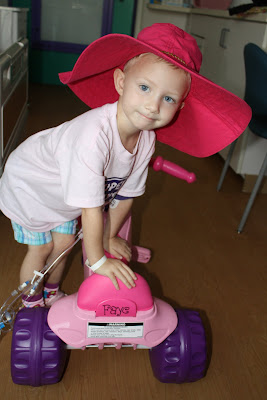 Something else I've been noticing is how much Faye has had to grow up since being diagnosed. When her Grandma Lori was there to visit she said how Faye seemed like an old soul. She was very matter-of-fact about her situation. When looking out her window at the park she said "When I get better I can swing real high." She's adapted to her new (temporary!) life and learns to submit to each new hardship. (She stopped fighting her eye drops and even started to say she liked them! "They tickle my eyes.") I even think she looks so much older now without her hair. Sometimes it's hard to remember she's only 3! But, it's comforting to know she is the same Faye who loves to give everyone a fashion show. Stacey says she is the fashionista around the hospital and everyone loves to see what she's wearing, which she picks out herself. Here's a picture of her doing this same thing before she got sick.