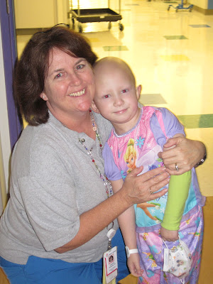 When we were getting ready to go to clinic Faye was telling me we needed to get all her stuff in the car, I think she was confused when I told her we weren't staying! After clinic we went to see our friends on the 9th floor, when we got up there Faye says "Now which room is mine?"